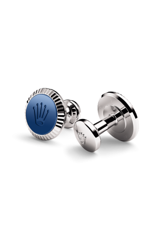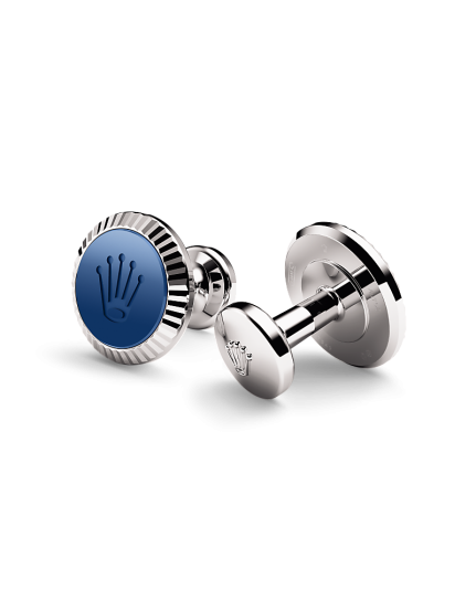 Rolex cufflinks made of 18 ct white gold featuring the signature Rolex fluting, Cerachrom insert and Rolex crown.