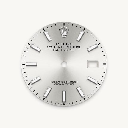 The sunray finish creates delicate light reflections on many dials in the Oyster Perpetual collection. It is obtained using masterful brushing techniques that create grooves running outwards from the centre of the dial. Light is diffused consistently along each engraving, creating a characteristic subtle glow that moves depending on the position of the wrist. Once the sunray finish has been completed, the dial colour is applied using Physical Vapour Deposition or electroplating. A light coat of varnish gives the dial its final look.