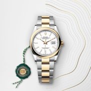 Gold is coveted for its lustre and nobility. Steel reinforces strength and reliability. Together, they harmoniously combine the best of their properties. A true Rolex signature, Rolesor has featured on Rolex models since the early 1930s, and was trademarked as a name in 1933. It is one of the prominent pillars of the Oyster collection.