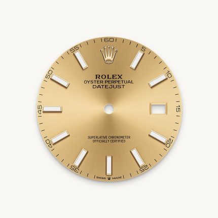 The Rolex fluted bezel is a mark of distinction. Originally, the fluting of the Oyster bezel had a functional purpose: it served to screw the bezel onto the case helping to ensure the waterproofness of the watch. It was therefore identical to the fluting on the case back, which was also screwed onto the case for waterproofness, using specific Rolex tools. Over time, the fluting became an aesthetic element, a genuine Rolex signature feature. Today the fluted bezel is a mark of distinction, in gold on this Datejust 41.
