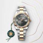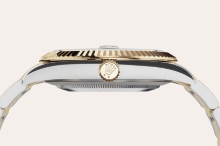 Gold is coveted for its lustre and nobility. Steel reinforces strength and reliability. Together, they harmoniously combine the best of their properties. A true Rolex signature, Rolesor has featured on Rolex models since the early 1930s, and was trademarked as a name in 1933. It is one of the prominent pillars of the Oyster collection.