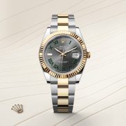 The Rolex fluted bezel is a mark of distinction. Originally, the fluting of the Oyster bezel had a functional purpose: it served to screw the bezel onto the case helping to ensure the waterproofness of the watch. It was therefore identical to the fluting on the case back, which was also screwed onto the case for waterproofness, using specific Rolex tools. Over time, the fluting became an aesthetic element, a genuine Rolex signature feature. Today the fluted bezel is a mark of distinction, in gold on this Datejust 41.