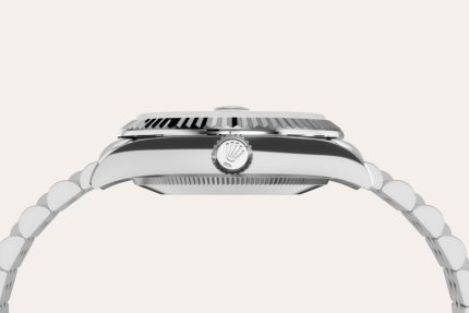 The Rolex fluted bezel is a mark of distinction. Originally, the fluting of the Oyster bezel had a functional purpose: it served to screw the bezel onto the case helping to ensure the waterproofness of the watch. It was therefore identical to the fluting on the case back, which was also screwed onto the case for waterproofness, using specific Rolex tools. Over time, the fluting became an aesthetic element, a genuine Rolex signature feature. Today the fluted bezel is a mark of distinction, in gold on this Datejust 31.